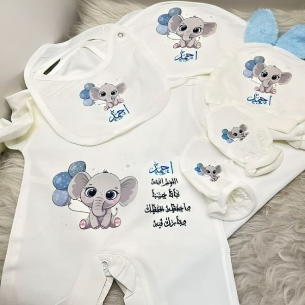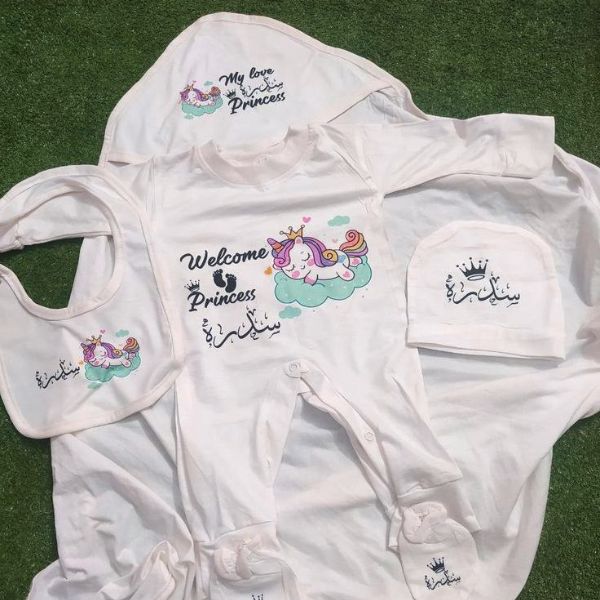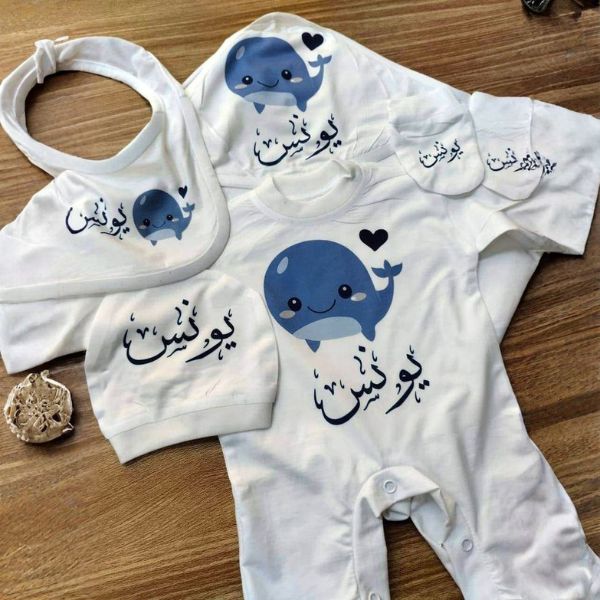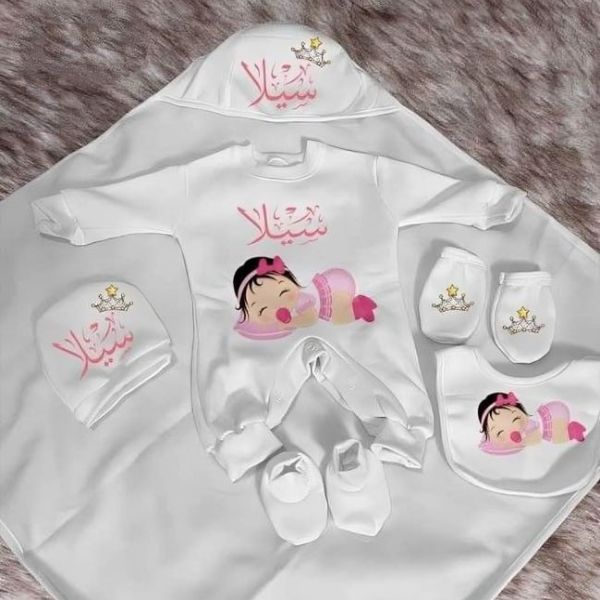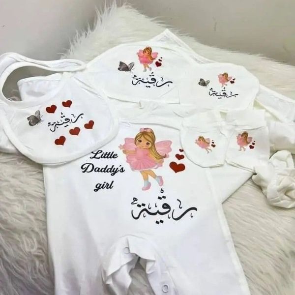 ٦ قطع مطبوعين باسم البيبي مخصوص 🍼💫