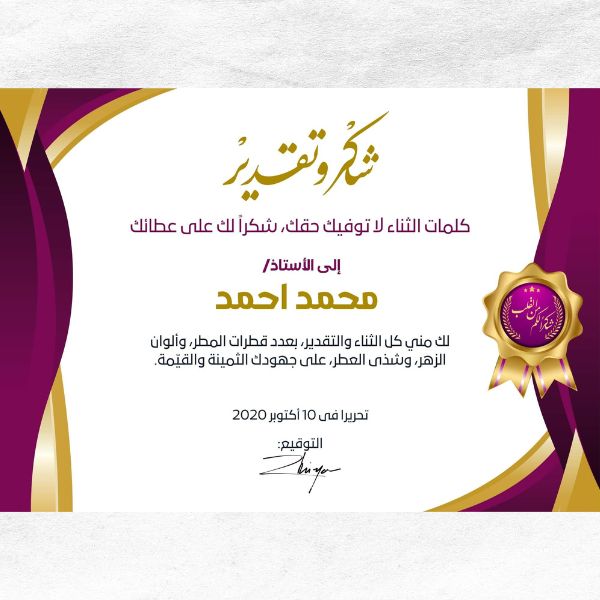 شهادات التقدير بأعلي كواليتي 💘🌟💥